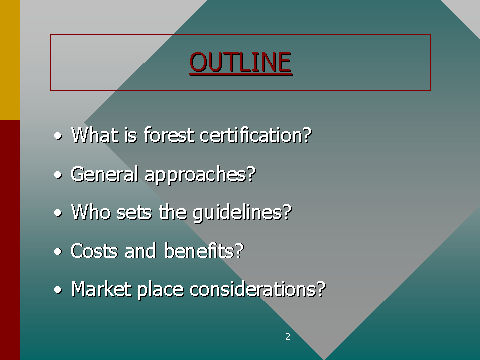 2. The approaches various organizations adopt to certify forests.
