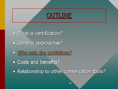 The next topic discusses who defines the certification guidelines, be they performance or management-system based.