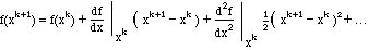 We then neglect the second and higher-order terms, set f(xk+1) = 0, and rearrange to get