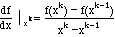 In the secant method the same formula is used as for the Newton-Raphson method, except that the derivative is approximated using the values from the last two iterates.