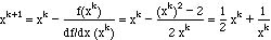 with the solution x = 1.4142136. The derivative is 2x, and the Newton-Raphson method is