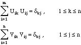 The rank, r, of a matrix is a value such that all r+1 by r+1 determinants are zero. If an n by n matrix A is singular then the rank of the matrix is r < n. The columns of U whose same-numbered elements wj are nonzero are an orthonormal set of basis vectors that span the range. The columns of V whose same-numbered wj are zero provide an orthonormal basis for the nullspace. The solution to the problem A x = f is