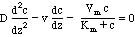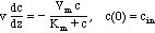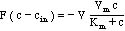 where one knows F, the flow rate; V, the volume; Vm and Km, constants in the reaction rate expression; and cin, the inlet concentration. Excel and Matlab are convenient software packages to solve this nonlinear equation.
