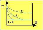 Parital differential equations - in one space dimension, example one, from mass transfer. If heat transfer takes place in a slab, but starting from one temperature profile, after which the temperature on one side changes, we get a parabolic partial differential equation
