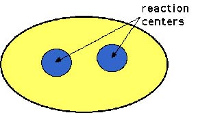 Suppose one has a multi-dimensional problem as illustrated. In the reaction centers reaction takes place, but in the surrounding (intracellular space) only diffusion occurs. The equations in the intracellular space are