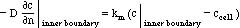 For the special case in which the reaction centers are all at the same concentration, the following condition balances the diffusive flux up to the reaction center with the mass transfer flux through a membrane (or other mass-transfer limiting device) on the outer section of the reaction center.