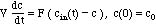 In this case, the solution to the differential equation gives the outlet concentration versus time. Also, the problem is linear in the concentration (if you double the inlet and initial concentrations, the concentration throughout all time is also doubled). This equation is called an ordinary differential equation initial value problem (ODE-IVP) - because the solution proceeds from some initial conditions. It is an ordinary differential equation because the dependent variable (concentration) depends on only one independent variable (time).
