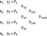 For example, consider P1234. The terms on the right-hand side involve P123 and P234. The "parents," P123 and P234, already agree at points 2 and 3. Here i=1, m=3; thus, the parents agree at xi+1, ..., xi+m-1 already. The formula makes Pi(i+1)...(i+m) agree with the function at the additional points xi+m and xi. Thus, Pi(i+1)...(i+m) agrees with the function at all the points {xi, xi+1, ...xi+m}.