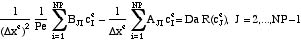 The orthogonal collocation on finite elements divides the domain, 0 x 1, into finite elements, and sets the residual to zero at the collocation points interior to the elements. The numbering system is shown in the figure.