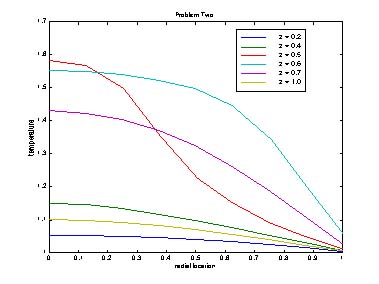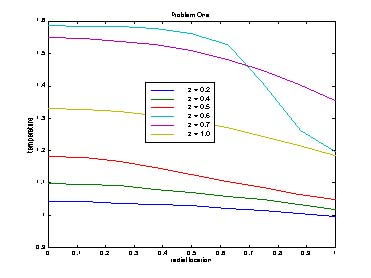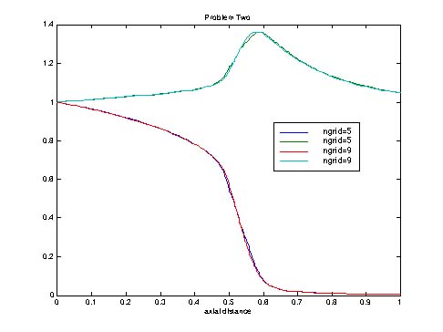 Solutions with 5 and 9 points show some disagreement, and the reason is clear from the next two figures, which show the radial profiles. The profile is jagged when only a few points are used. These figures confirm that fact that the radial profiles are more important when the Biot number is larger.