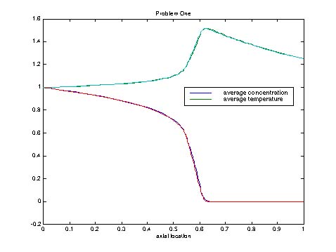 for the radially-averaged concentration and temperature are shown in the figures. Solutions