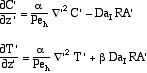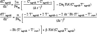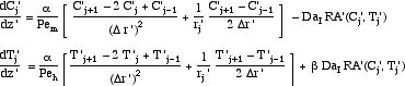 Solutions for the radially-averaged concentration and temperature are shown in the figures.