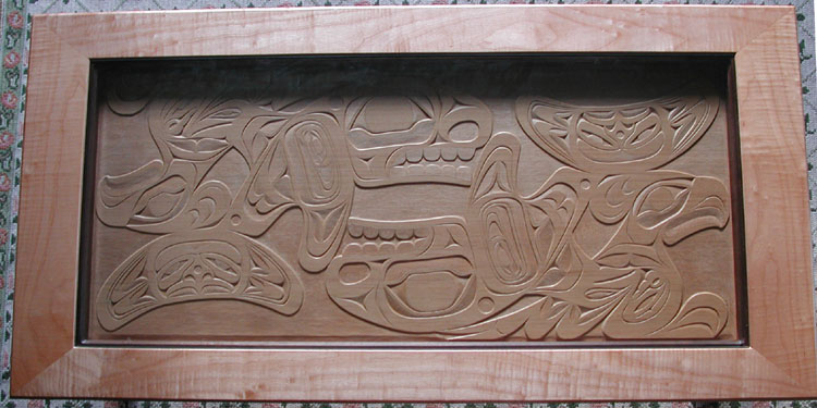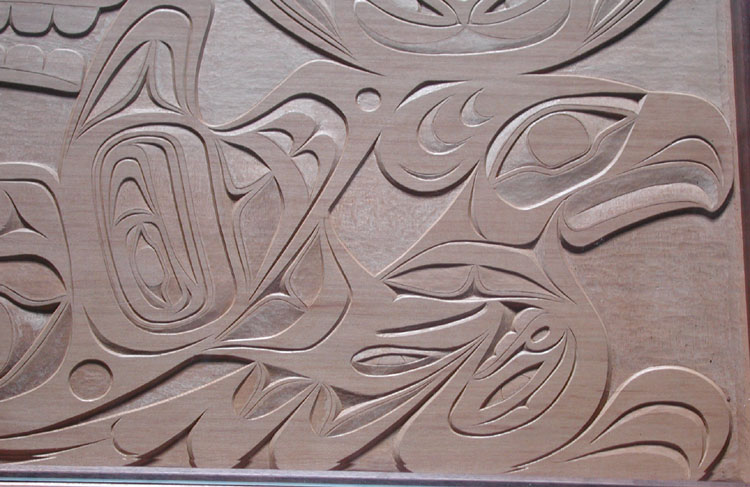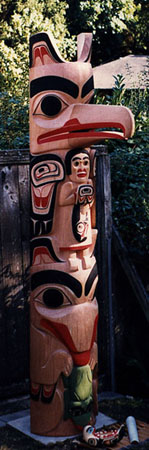 Totem Pole (eagle, sea bear: sea bear holding frog and between wings of eagle women holding salmon; 10 ft)