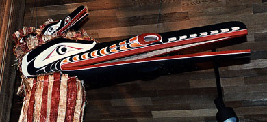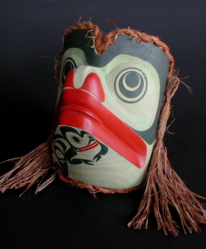 Hamatsa, raven, Mask (on top of raven are two baby ravens. Beaks can be clapped separately; 5 ft X 16 in)