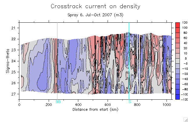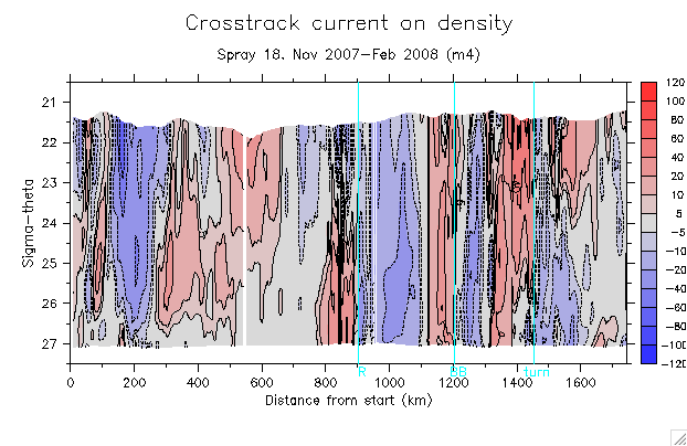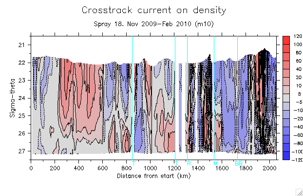 Light blue vertical lines indicate landmarks: R=Rossel, T=Tagula, BB=BudiBudi, G=Gizo (i.e. where the glider approached Gizo and turned back), Bg=Bougainville (near coast), M=Misima, S-Shortland.