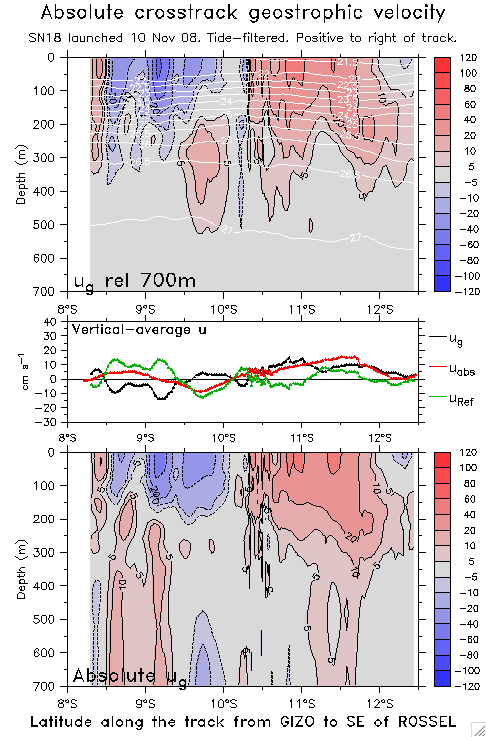 For these SSW tracks out of Gizo, positive values (red) are to the west.