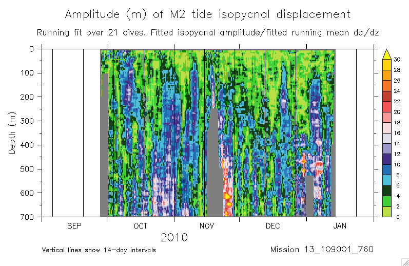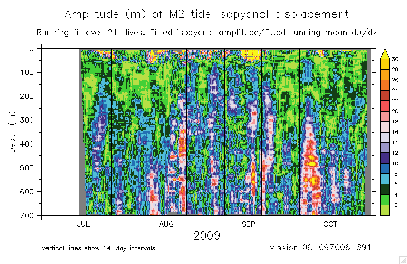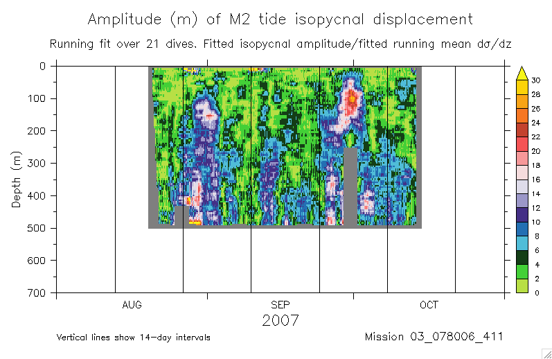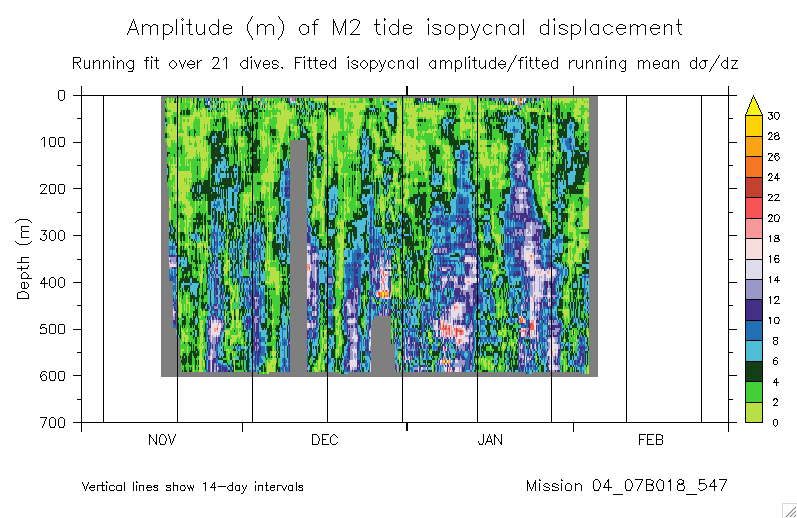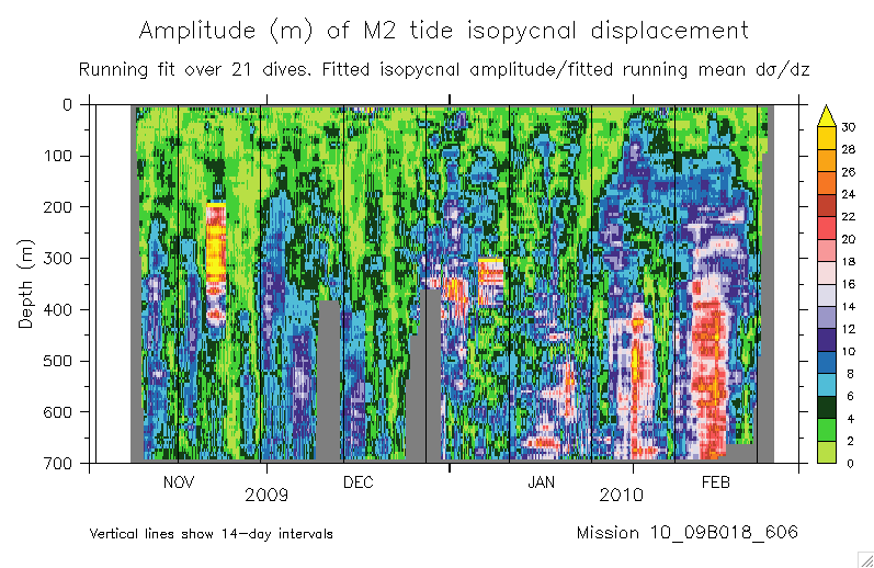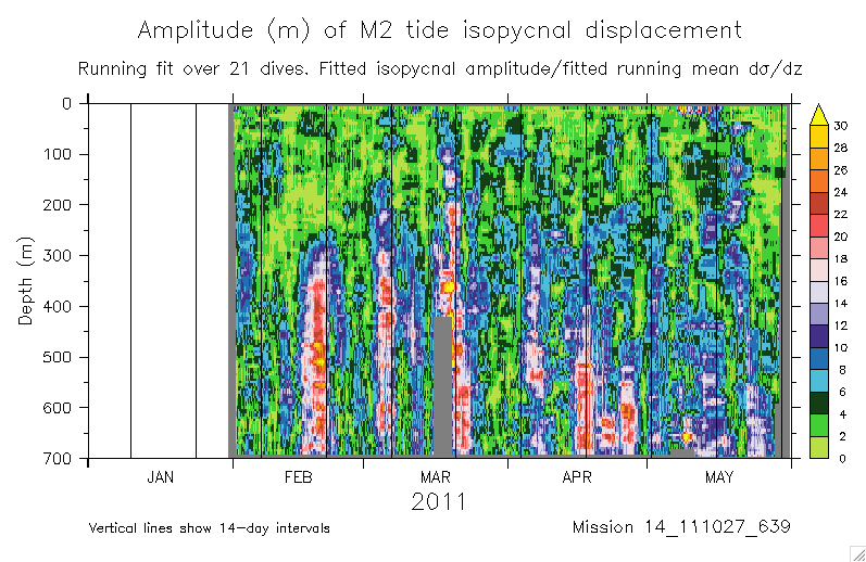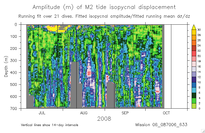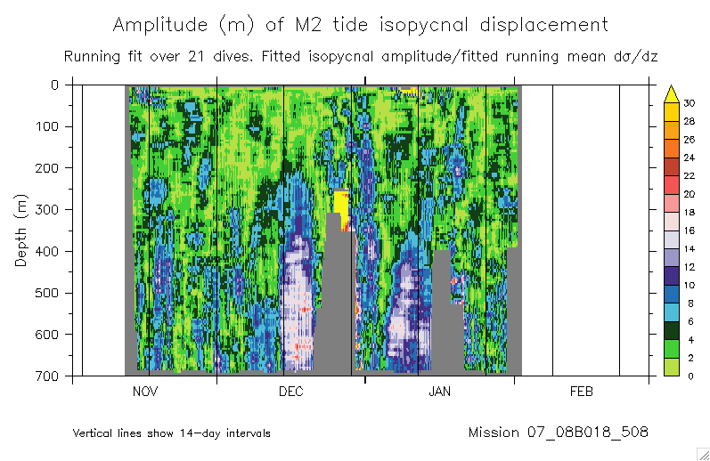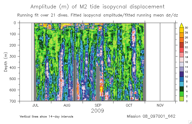 Fitting the M2 tide to glider isopycnal displacements
