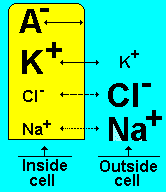 molecules (A-) inside the neuron cannot cross the membrane.