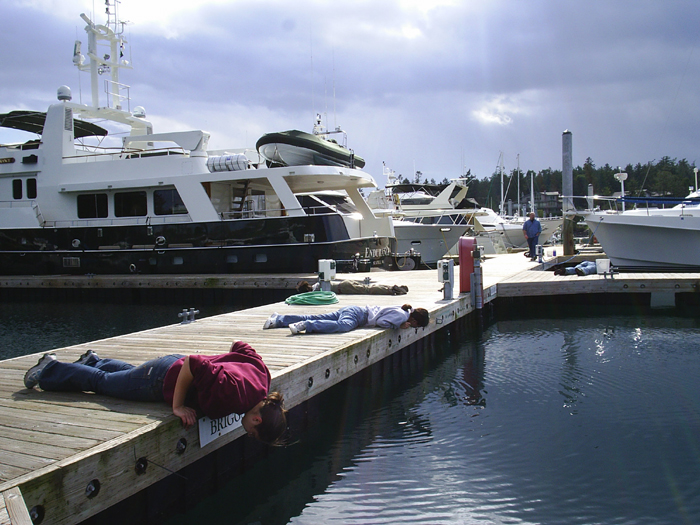 Apprentices Amber Jimenez and Stephanie Suzuki, T.A. Glen MacMaster standing in the background.