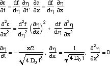 Thus we have an ordinary differential equation to solve rather than a partial differential equation. When the diffusivity is constant the solution is the well-known complementary error function.