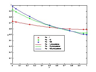 Now vary the Peclet number, for the case of Da = 1.