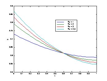 The code is available. When the code was run, however, it was found that the iteration is unstable. Solutions could be obtained for Da = 1 and Pe = 1, 2, 3, 4.5, and 4.6, but not 4.7 or higher values. The progression of solutions is shown in the figure.