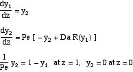 Fortunately, the iterations do converge if the integration is done in the reverse direction. Thus, in the second approach, we integrate from the outlet to the inlet. Thus, make the variable change: z = x, and the equations are