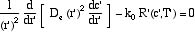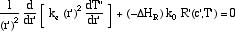 Here De is the effective diffusivity of the porous medium, k0 is the rate constant, ke is the effective thermal conductivity of the porous media, and HR is the heat of reaction. The rate of removal of A is k0R' in units of concentration per time, or mass or moles per volume per time. We use boundary conditions at the center to have no flux through the center, making the problem symmetric about the origin. At the origin