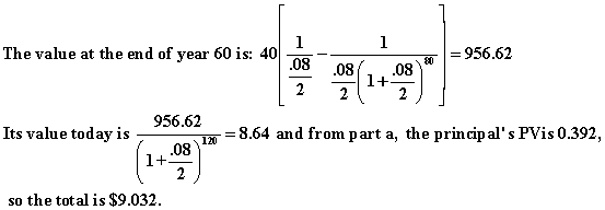 This is a deferred annuity of $40 (half of 8% of $1000) every 6 months: