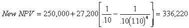 b. Assume that the NPV of the project if equity financed is $250,000 assuming a discount rate of 10%. You are thinking about using $1 million in debt with an 8% annual coupon to finance the project. If you retire the debt when you sell the equipment, what will the new NPV be? ( 4pts)