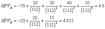 - The discount rate is 12%. What are the NPV's for the two