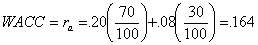 return on equity is 20%, its return on debt is 8% and its capital