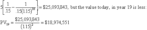IN YEAR 21, the Value of the annuity of 10 payments of $5M is