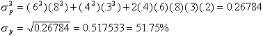 First calculate the variance and then take the square root to get the standard deviation. The weights are .6 and .4 for AMZN and GM (60% and 40%) and the standard deviations of the individual stocks are .8 and .3 (80% and 30%). rho (r ) =.2.