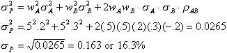 10. You hold one stock (A) with a standard deviation of 20%. You are thinking about buying another stock (B) with a standard deviation of 30%. You will hold these two stocks in a portfolio, with 50% of your money invested in each. Stock B has a correlation coefficient of 0.2 with stock A. Your friend says that adding a stock with higher standard deviation (B) than stock A will result in a riskier portfolio than just holding A alone. Is he right? That is, will your portfolio of A & B be riskier than just stock A? Why or why not? [6]