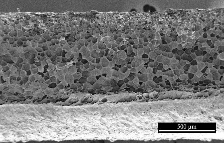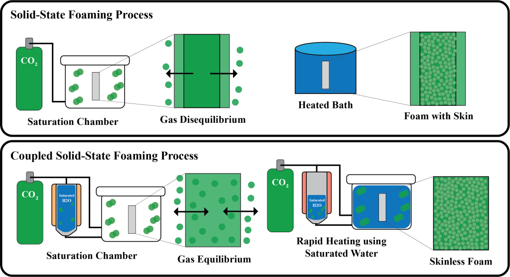Primary Goals: Fabrication of thermoplastic nano-porous polymer sheets through a solid-state foaming process, without the ubiquitous solid surface layer (“skin”) characteristic of this process. The elimination of said skin allows access to the internal cellular structure of these sheet materials.