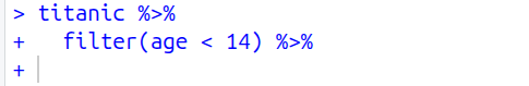 This code snippet first takes titanic data, thereafter filters all children, and then sends all the children to … nowhere.