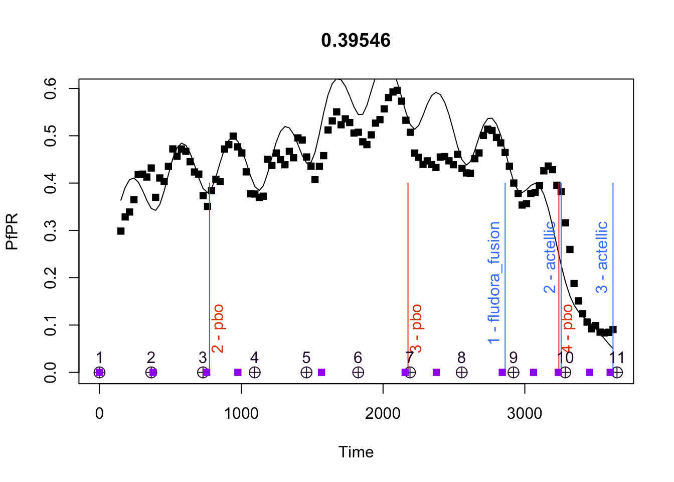 and pass it the Julian dates, the pesticides, and the coverage (% of houses sprayed).