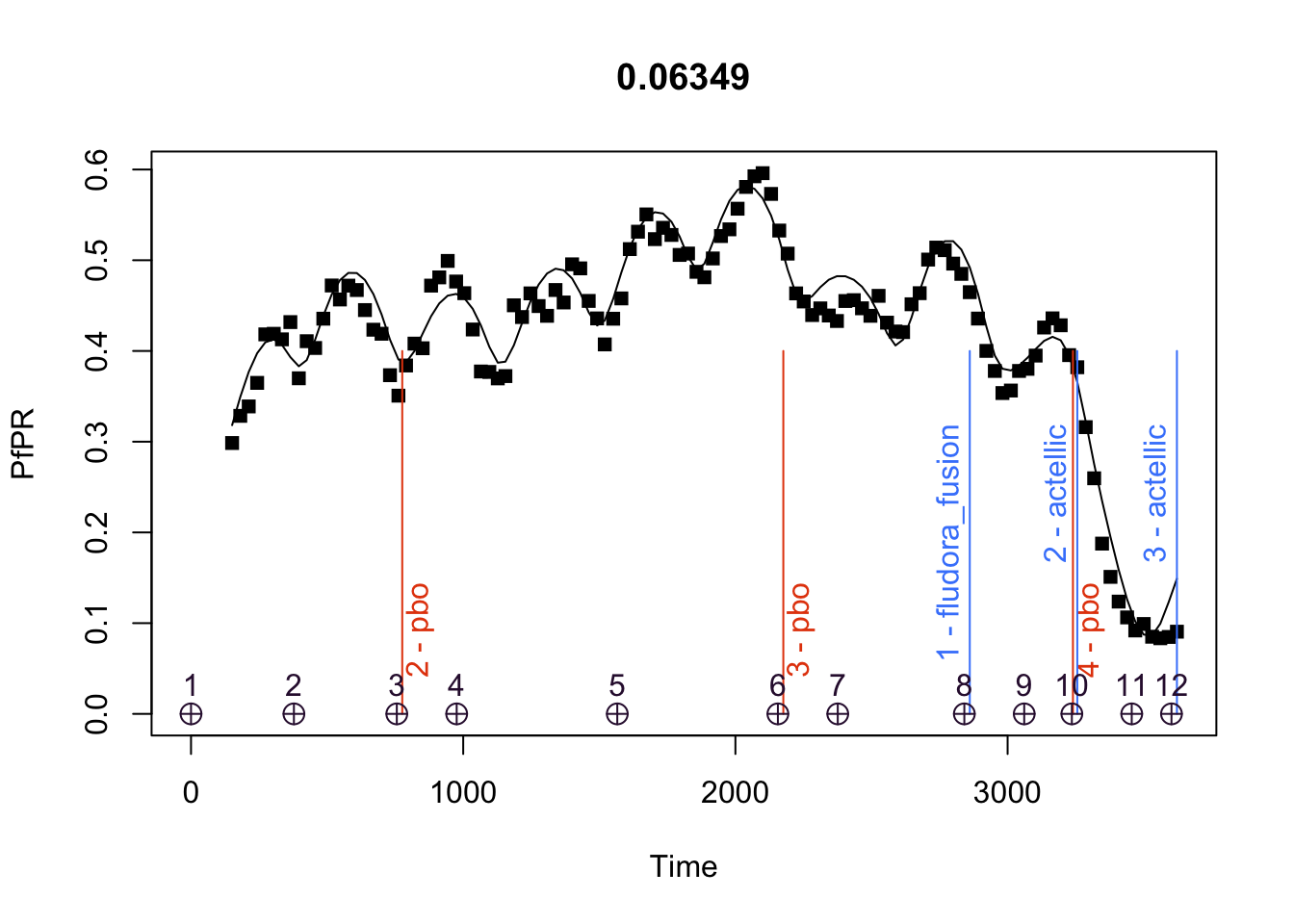 Routine evaluation of vector control for malaria presents enormous challenges. This vignette considers the challenge of evaluating the impact of mass bed net distributions and mass indoor house spraying (i.e. indoor residual spraying, or IRS).