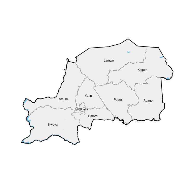 Agago District | Amuru District | Gulu District | Kitgum District | Lamwo District | Nwoya District | Omoro District | Pader District | Gulu City