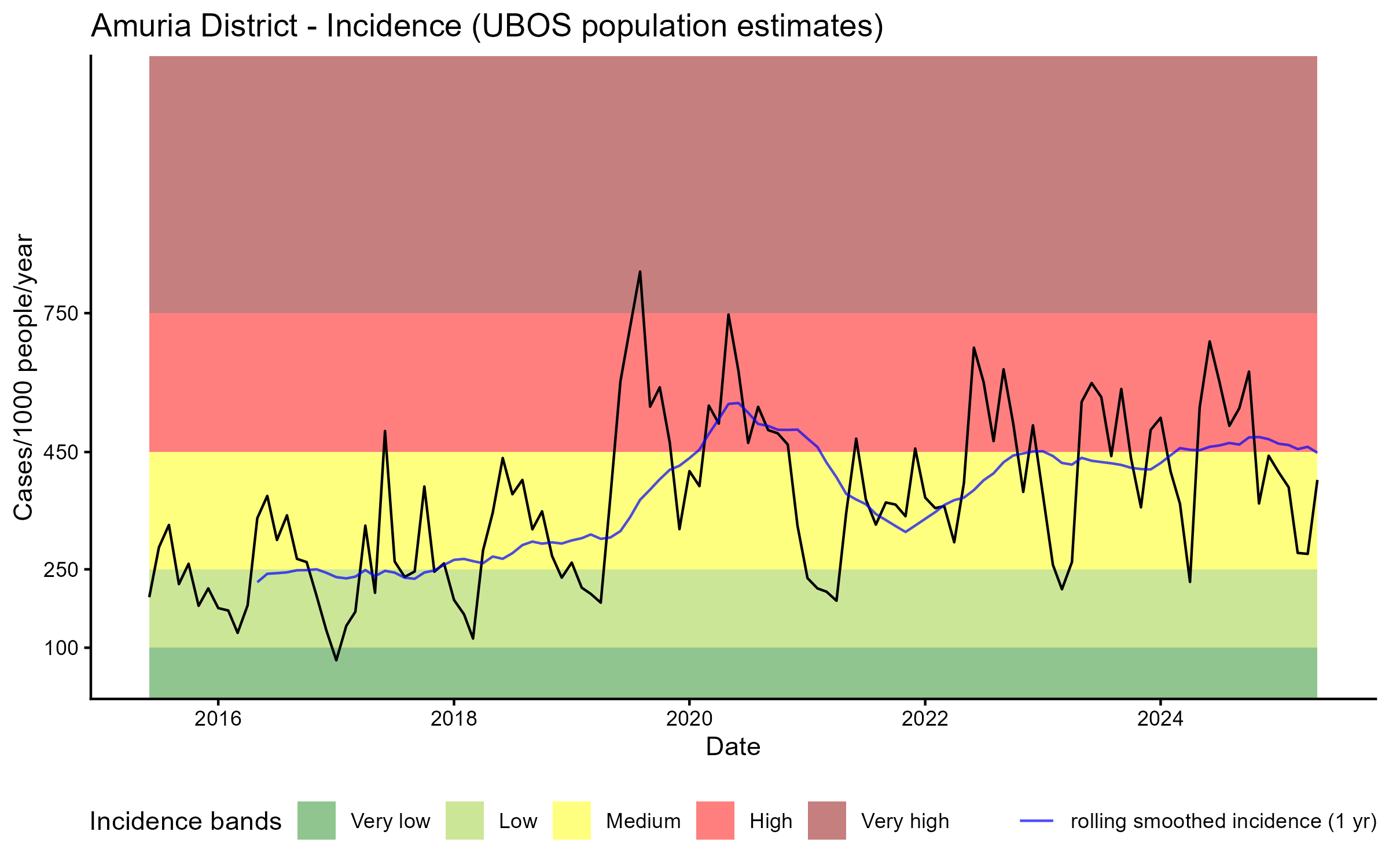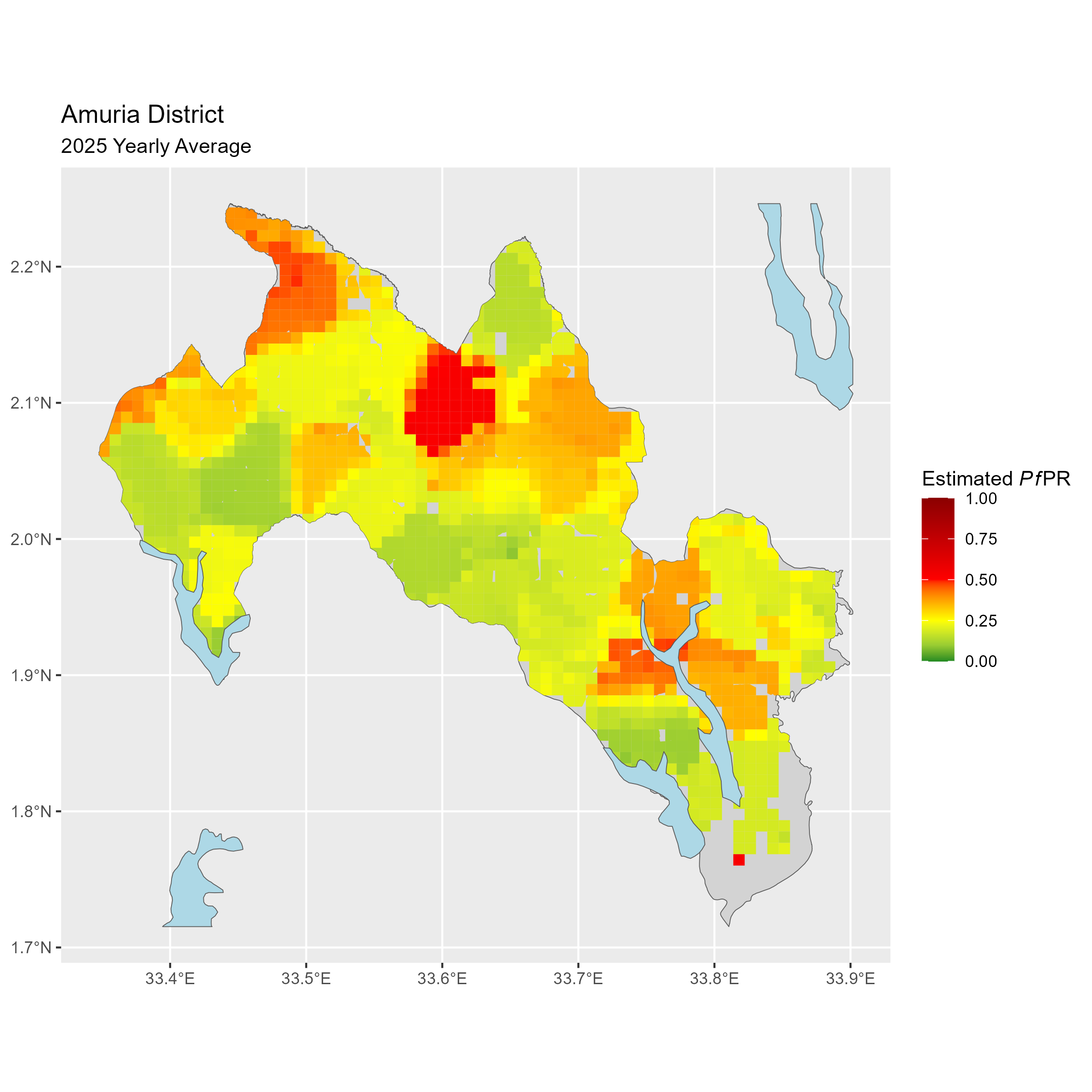 Click to watch an animation of PfPR at pixel level (in a new tab) by Year or by Month).