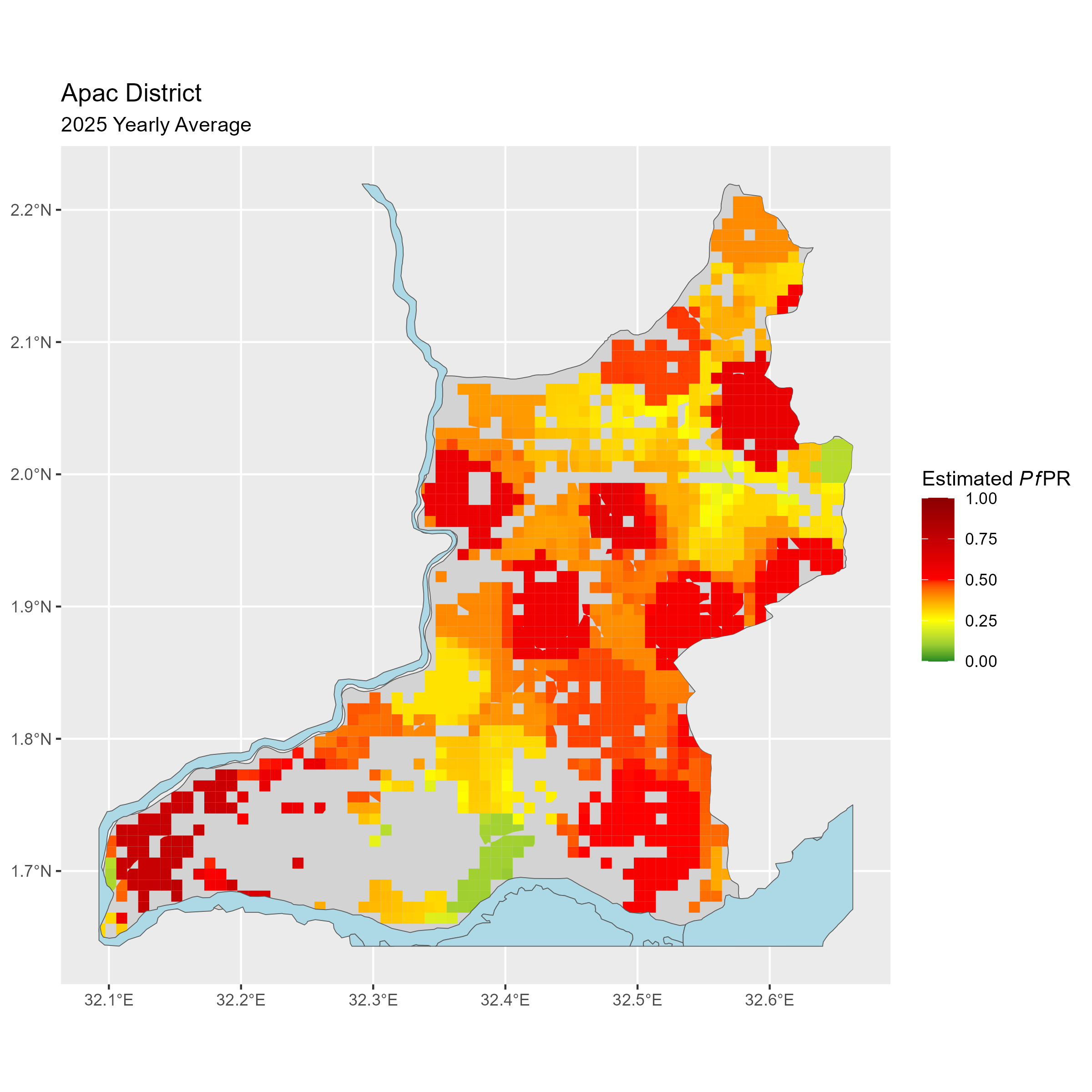 Click to watch an animation of PfPR at pixel level (in a new tab) by Year or by Month).
