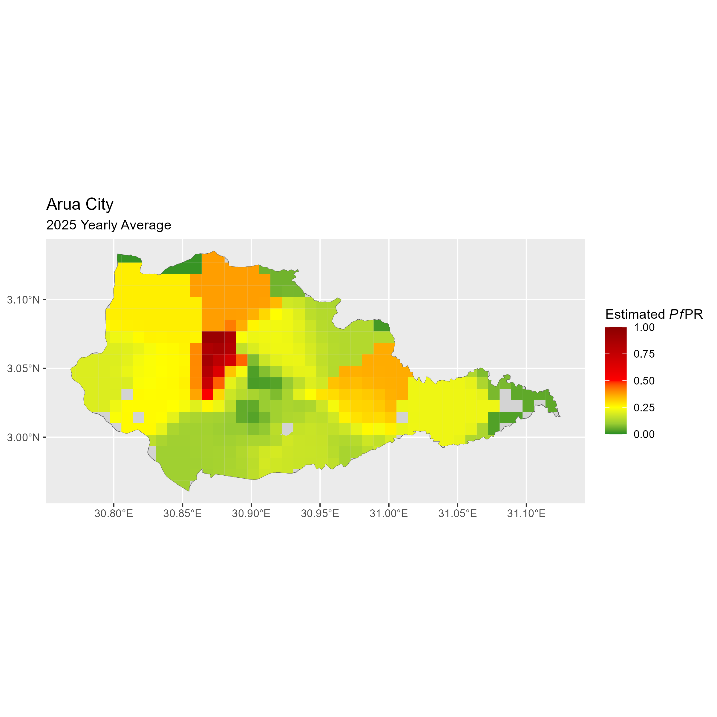 Click to watch an animation of PfPR at pixel level (in a new tab) by Year or by Month).