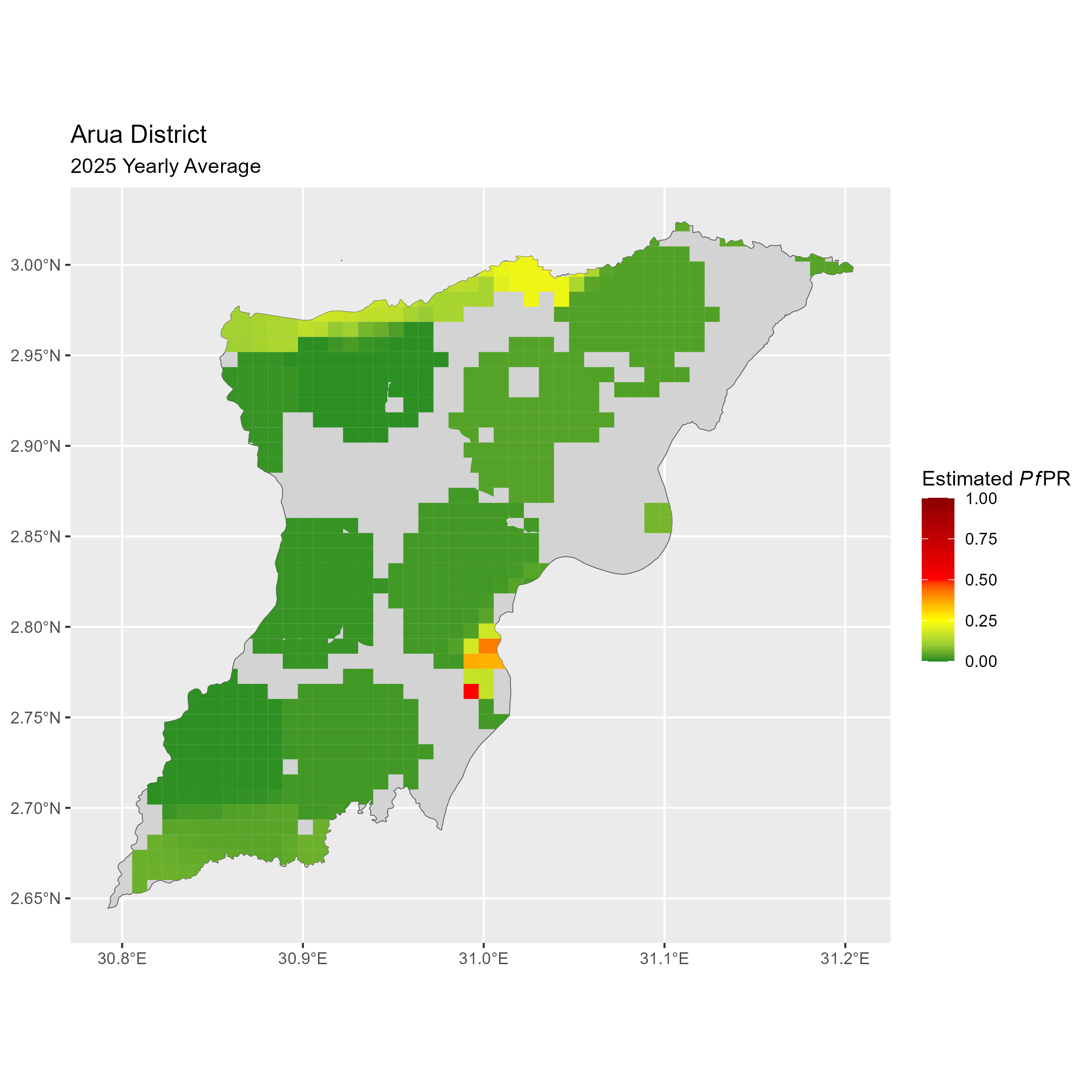 Click to watch an animation of PfPR at pixel level (in a new tab) by Year or by Month).