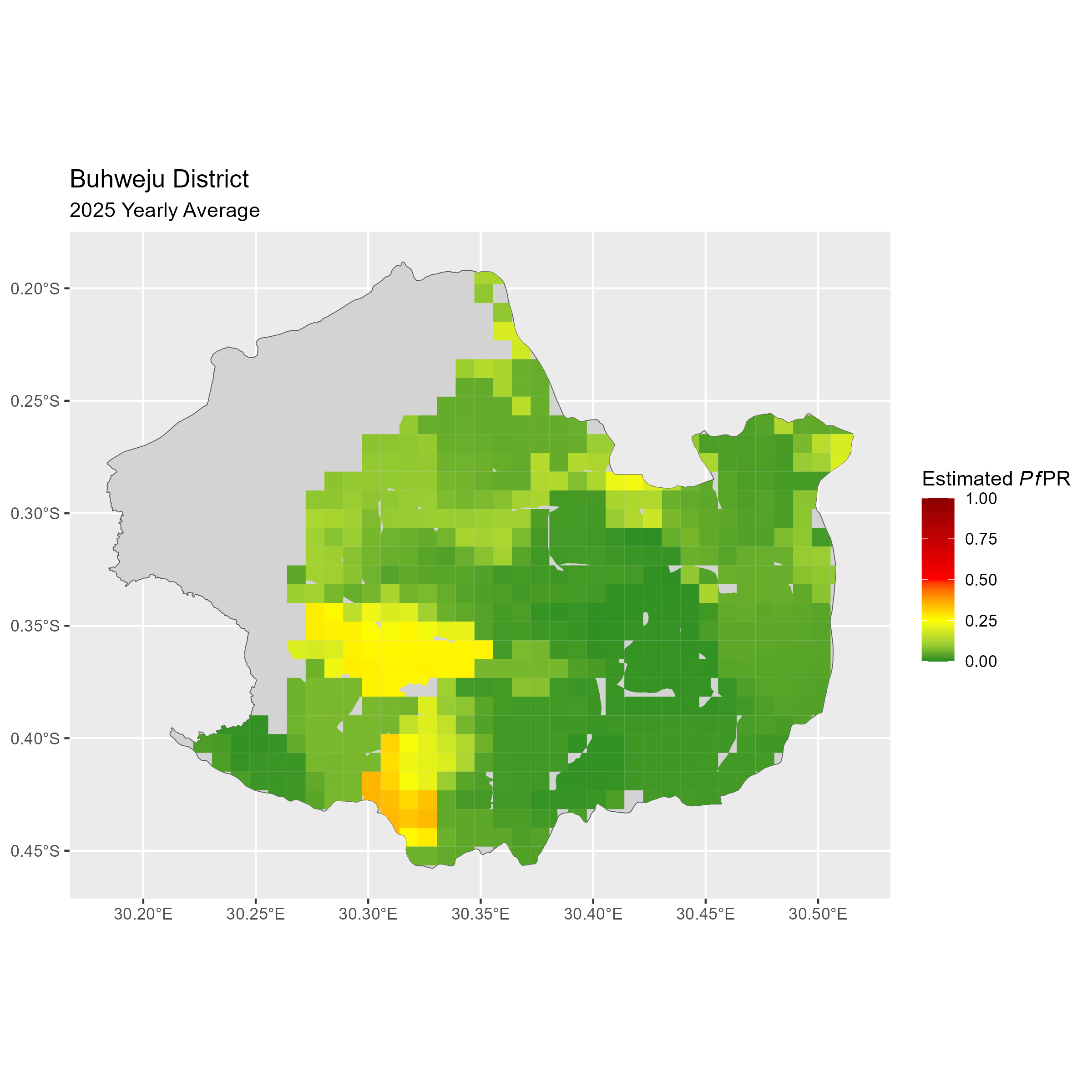 Click to watch an animation of PfPR at pixel level (in a new tab) by Year or by Month).
