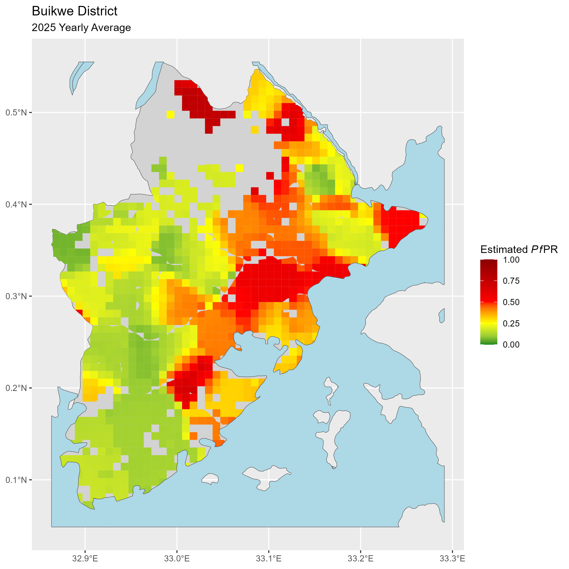 Click to watch an animation of PfPR at pixel level (in a new tab) by Year or by Month).