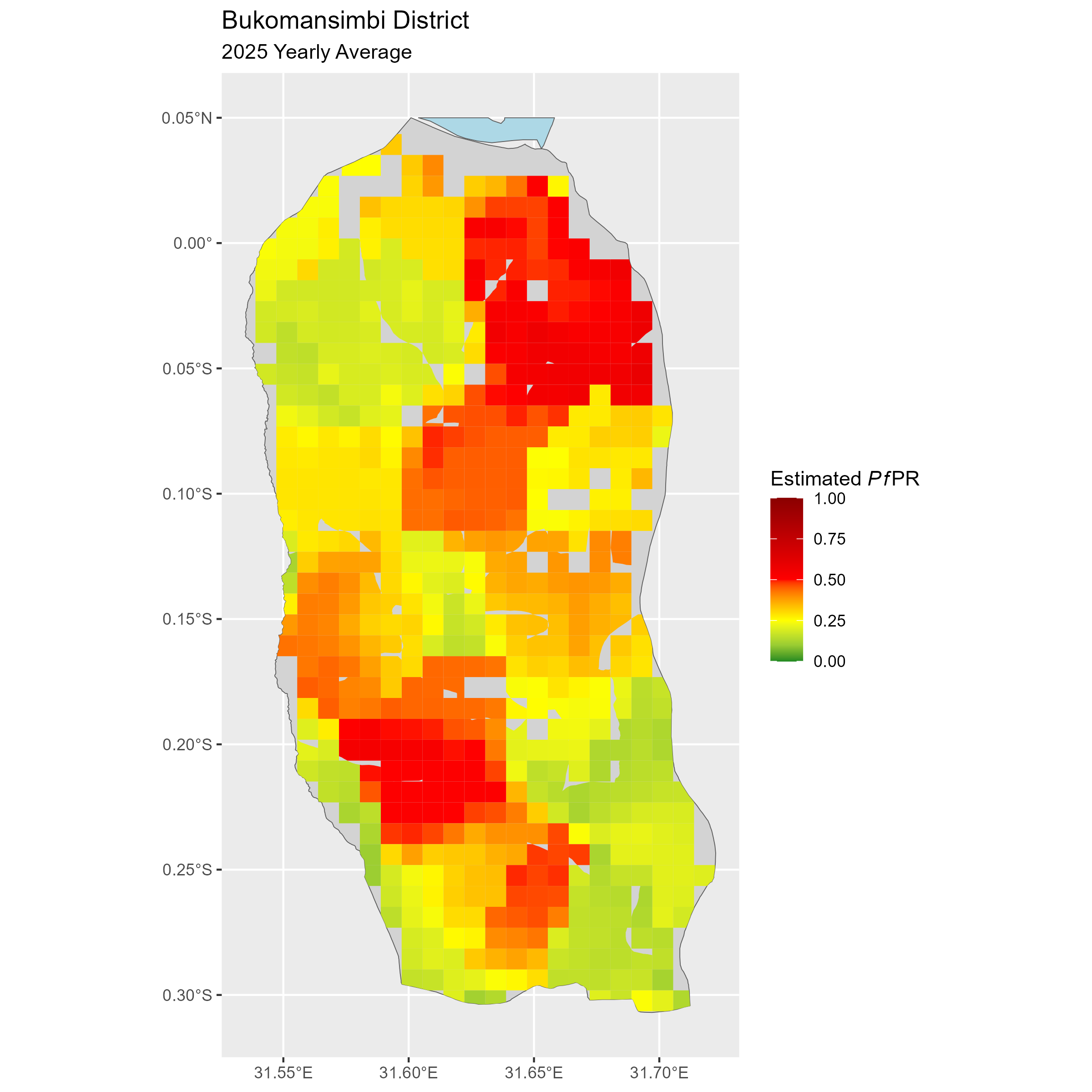 Click to watch an animation of PfPR at pixel level (in a new tab) by Year or by Month).