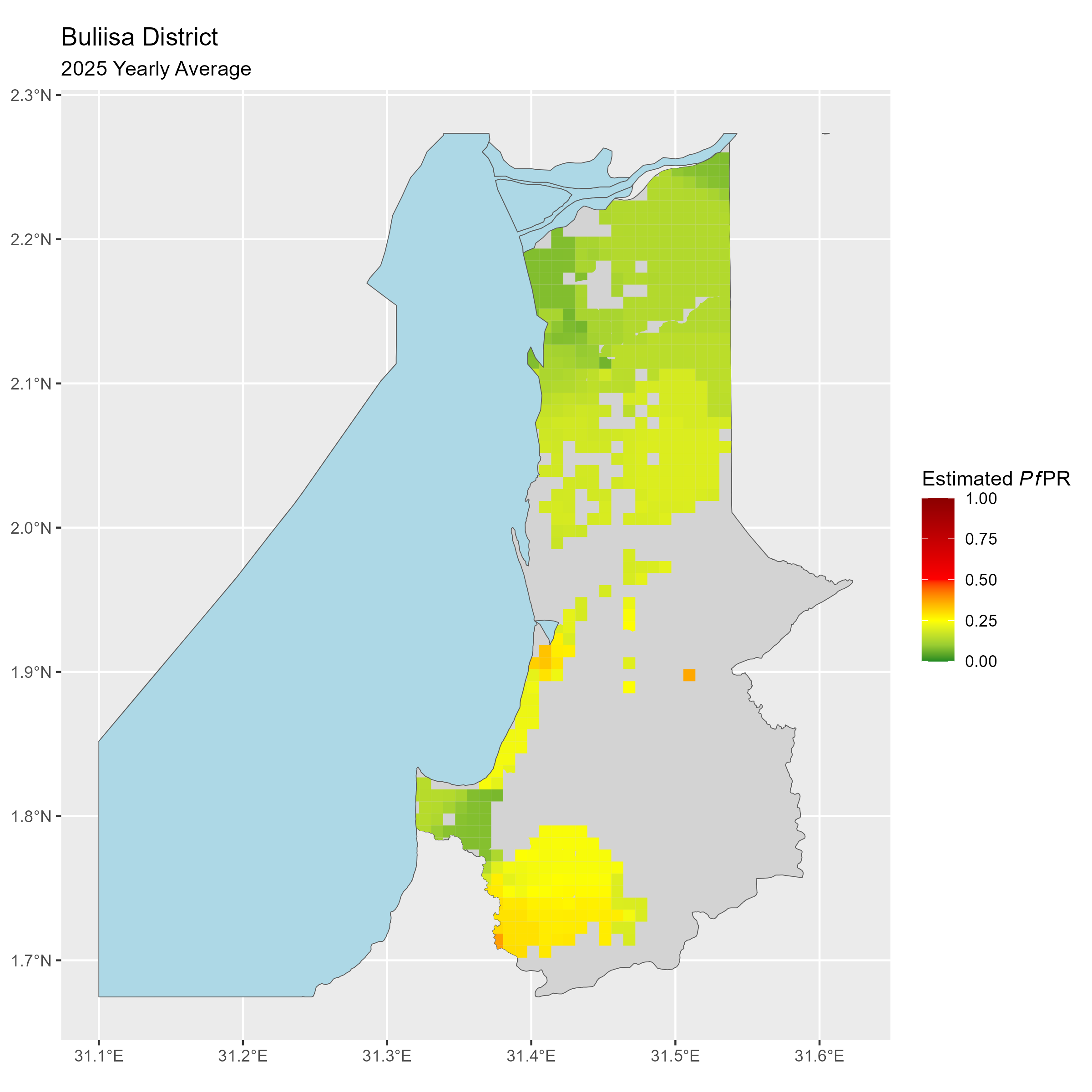 Click to watch an animation of PfPR at pixel level (in a new tab) by Year or by Month).