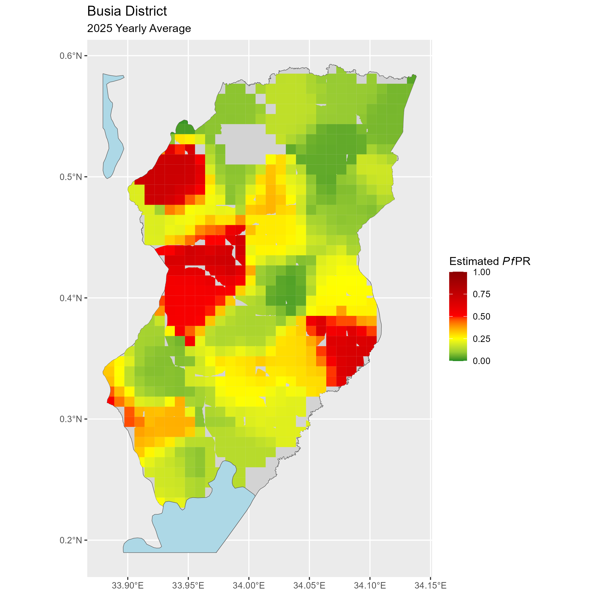 Click to watch an animation of PfPR at pixel level (in a new tab) by Year or by Month).