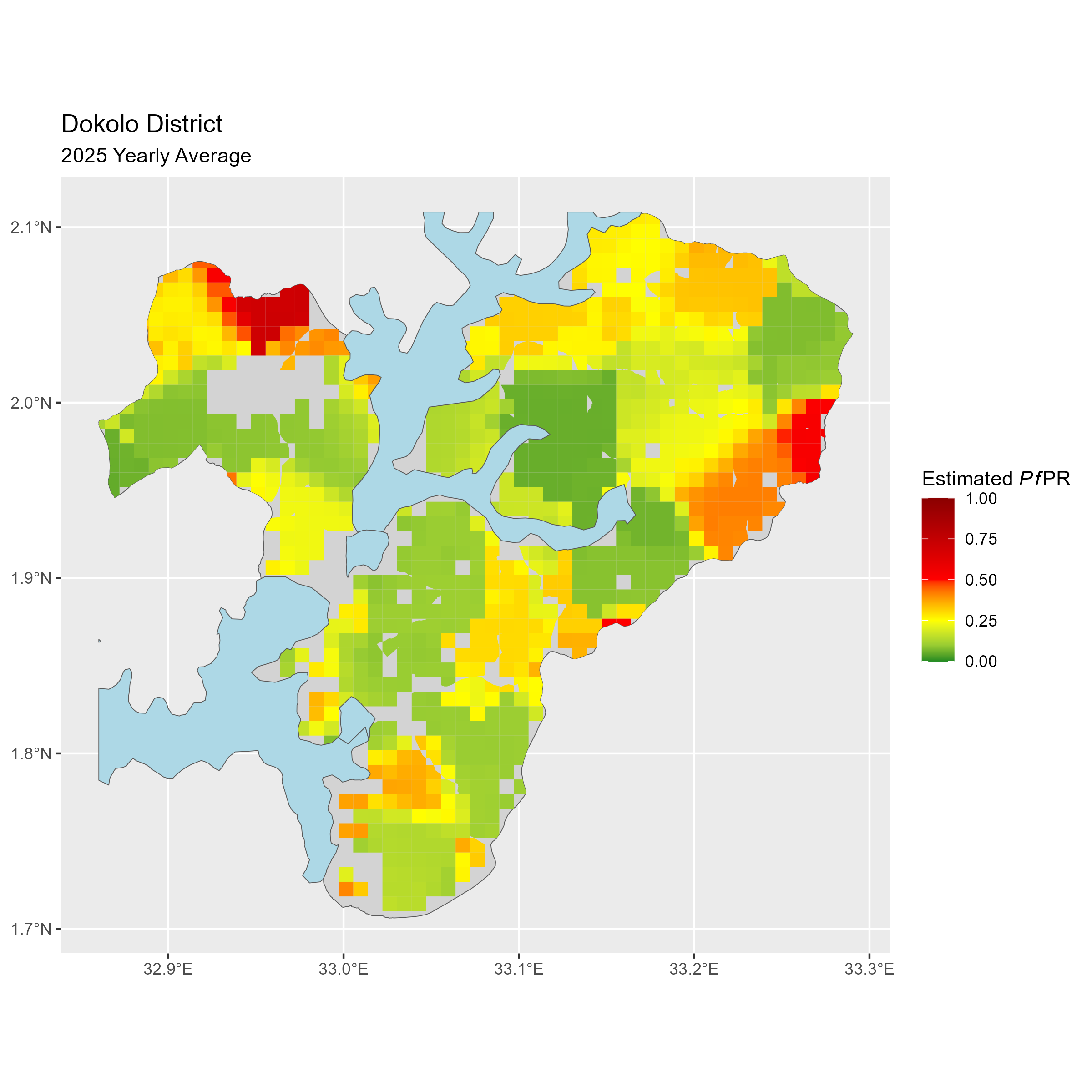 Click to watch an animation of PfPR at pixel level (in a new tab) by Year or by Month).